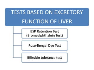 Tests based on excretory functions of Liver